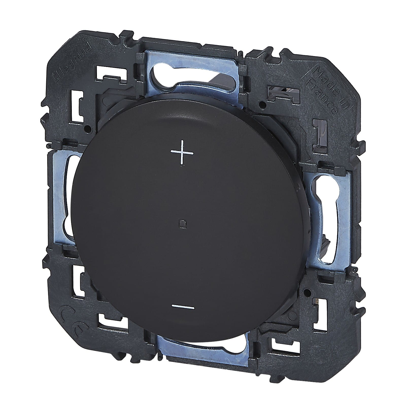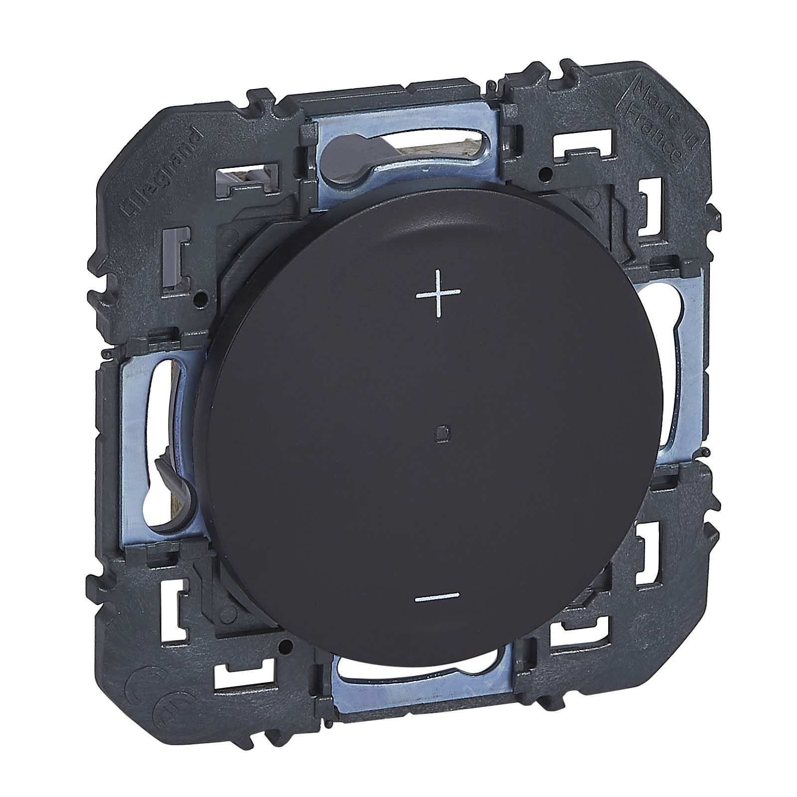 Permet de commander les lampes 150W maximum de type dimmable, LEDs, halogènes, fluocompact du marché Avec réglage butée haute et basse d'éclairage Câblage 3 fils avec Neutre Encombrement réduit : compatible avec boîte profondeur 30mm Noir mat - À équiper d'une plaque