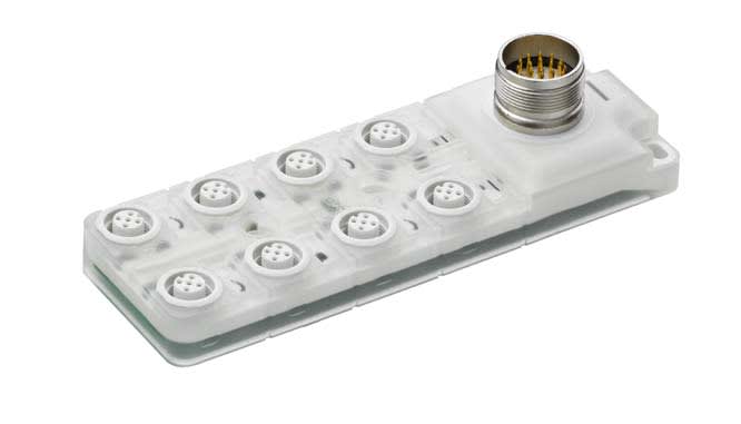 Connexion principale: Connecteur rond, M23, 19 pôles, Codage A, Prise mâle Nombre de connexions du distributeur: 8 pièce(s) Distributeurs: M12, 5 pôles, Codage A, Prise femelle Bo