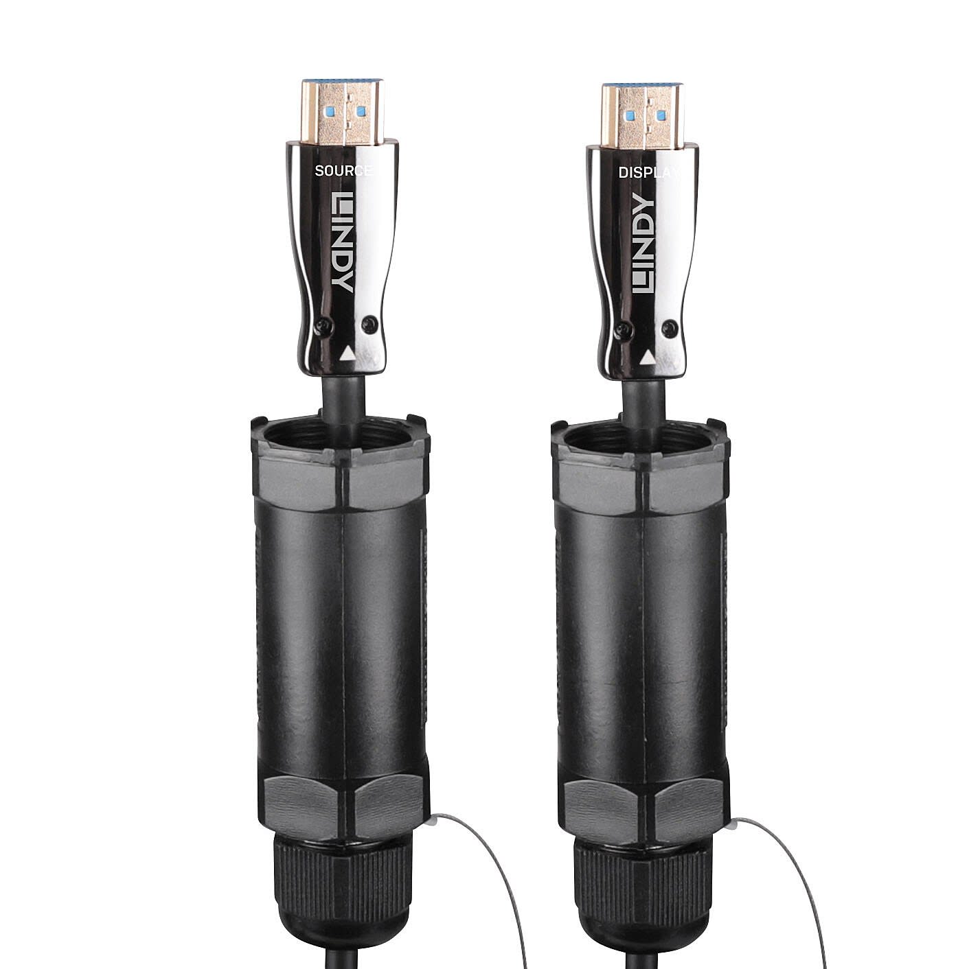 La gamme Lindy de câbles fibres optiques blindées hybrides est une solution professionnelle pour étendre les signaux HDMI® sur de plus longues distances. La construction de ce câble hybride HDMI® extrêmement robuste comporte sous la gaine du câble des fibres aramides et une enveloppe blindée supplémentaire, ce qui maintient une bonne flexibilité et une résistance élevée aux EMI et RFI. Ces câbles hybrides sont idéaux pour les installations audiovisuelles critiques et les installations professionnelles telles que les événements en direct et les salons professionnels.