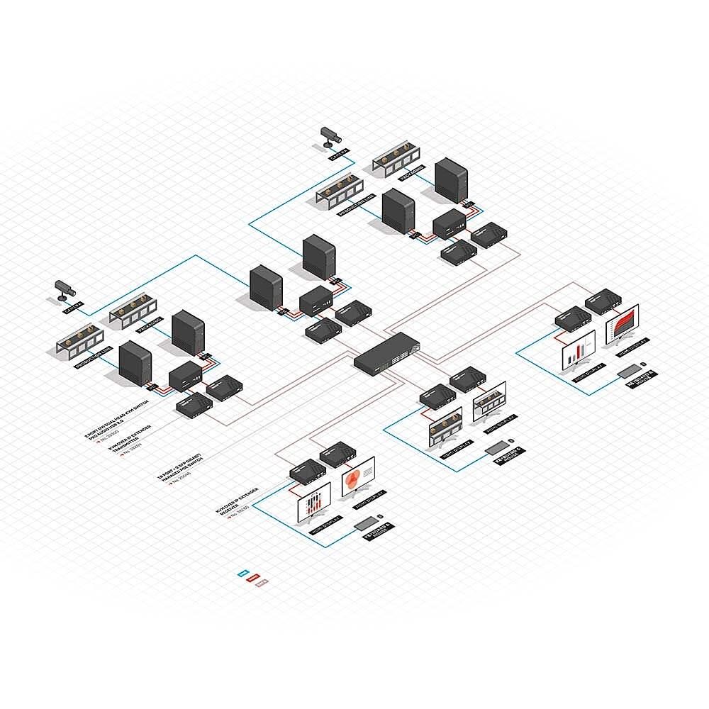 - Etend les signaux HDMI® 4K30, USB HID et IR sur un réseau IP