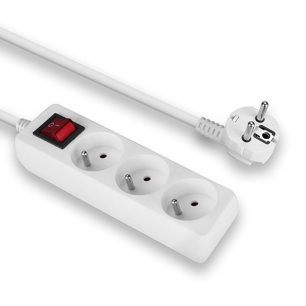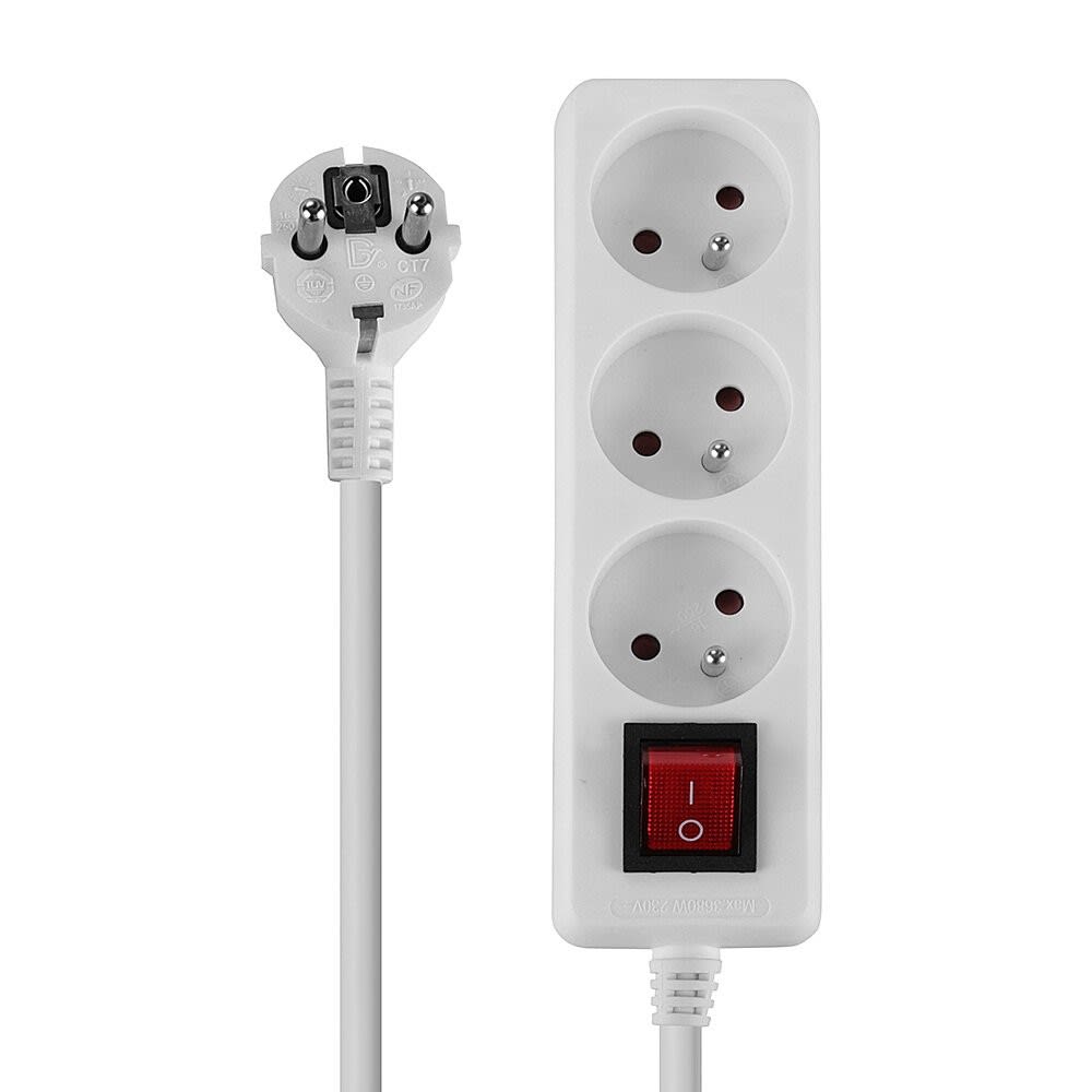 Multiprise 3 prises FR avec interrupteur, blanc