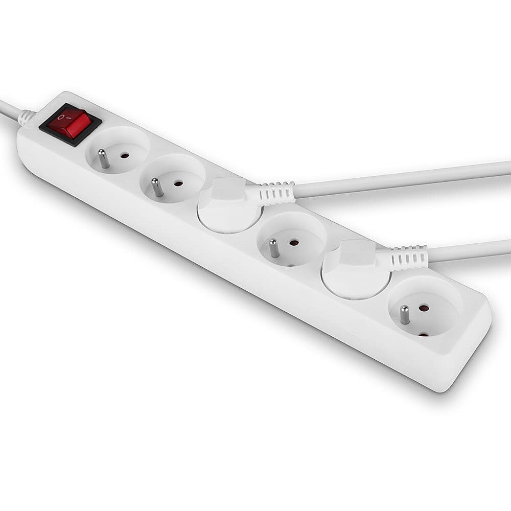 Multiprise 6 prises françaises orientées à 45°, pour faciliter le branchement , cordon secteur longueur 1,4m, avec interrupteur