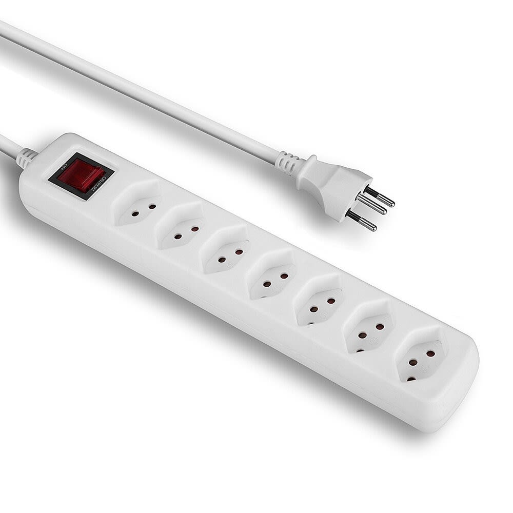 Multiprise 7 prises Suisse avec interrupteur, blanc