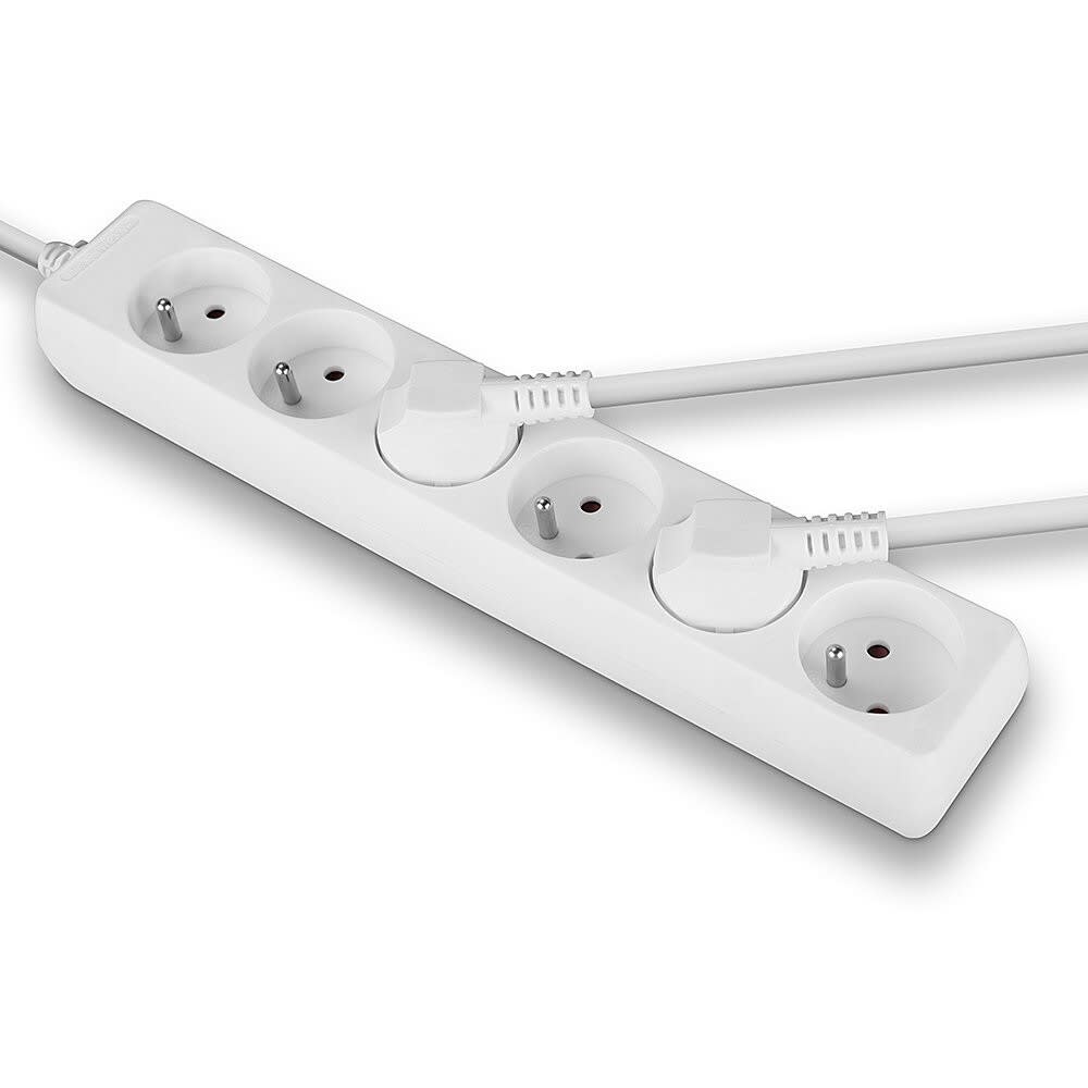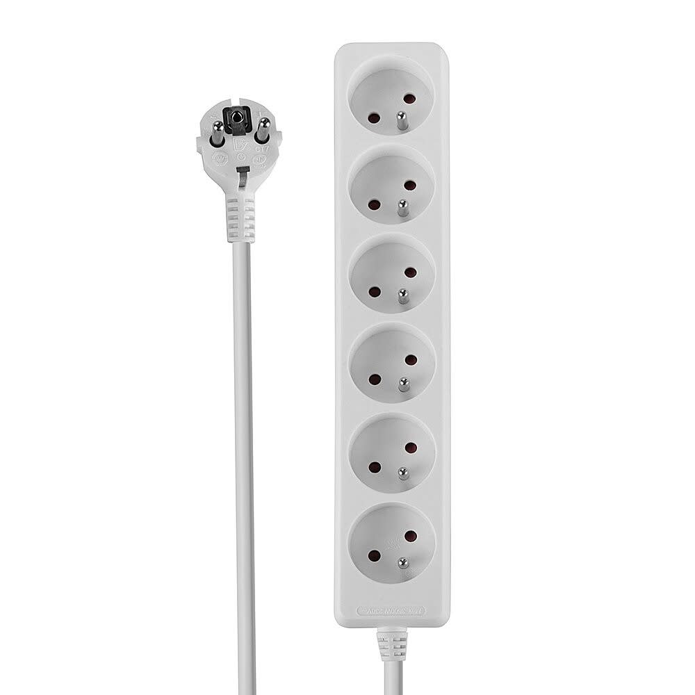 Multiprise 6 prises françaises orientées à 45°, pour faciliter le branchement, cordon secteur longueur 1,4m