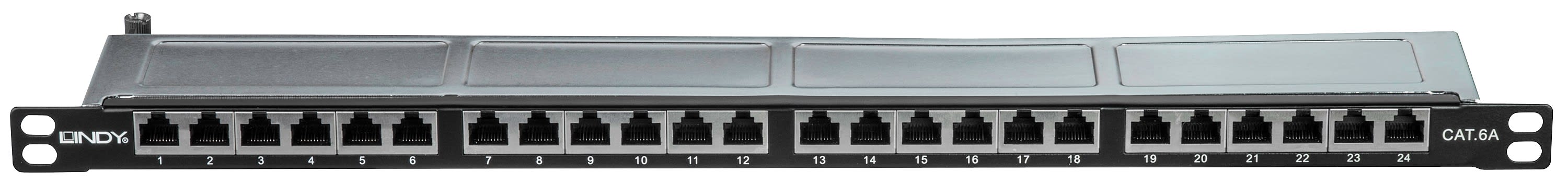 Lindy - Panneau de brassage 24 ports Cat.6A STP, 1/2U, noir - 25884