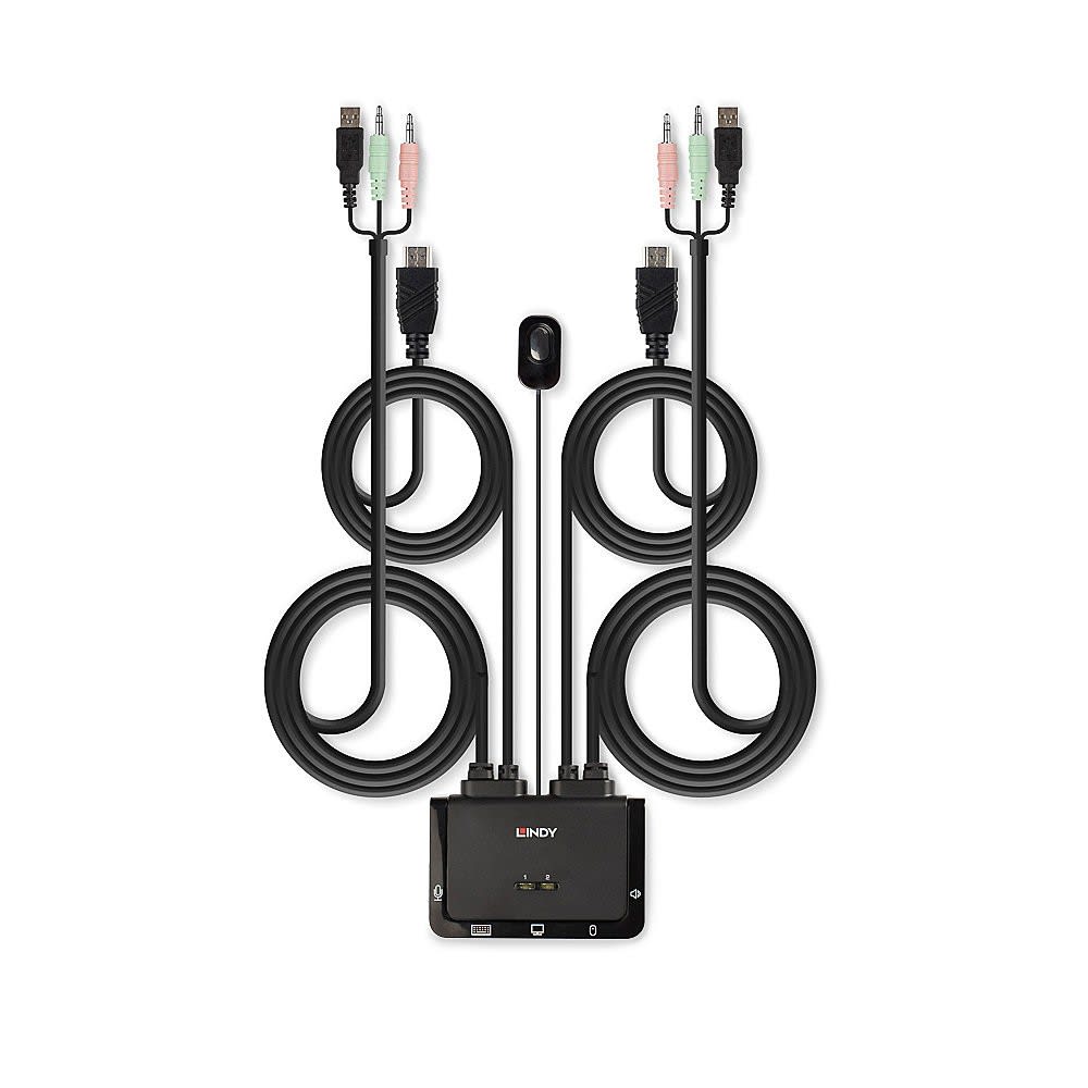 Lindy - Switch KVM 2 ports HDMI 4K30, USB 2.0 & audio, câbles intégrés - 42340