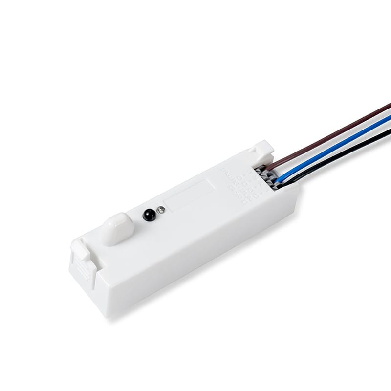 ACCESSOIRE DETECTEUR MICROWAVE HF SWITCH IP20 IK02 BLANC, Boîtier en polycarbonate, température de fonctionnement max de 650 °C, garantie de 5 ans, fixation modulaire, montage au plafond (2,5 à 5 m) ou au mur (2 à 3 m) Dimensions:92×26×30mm