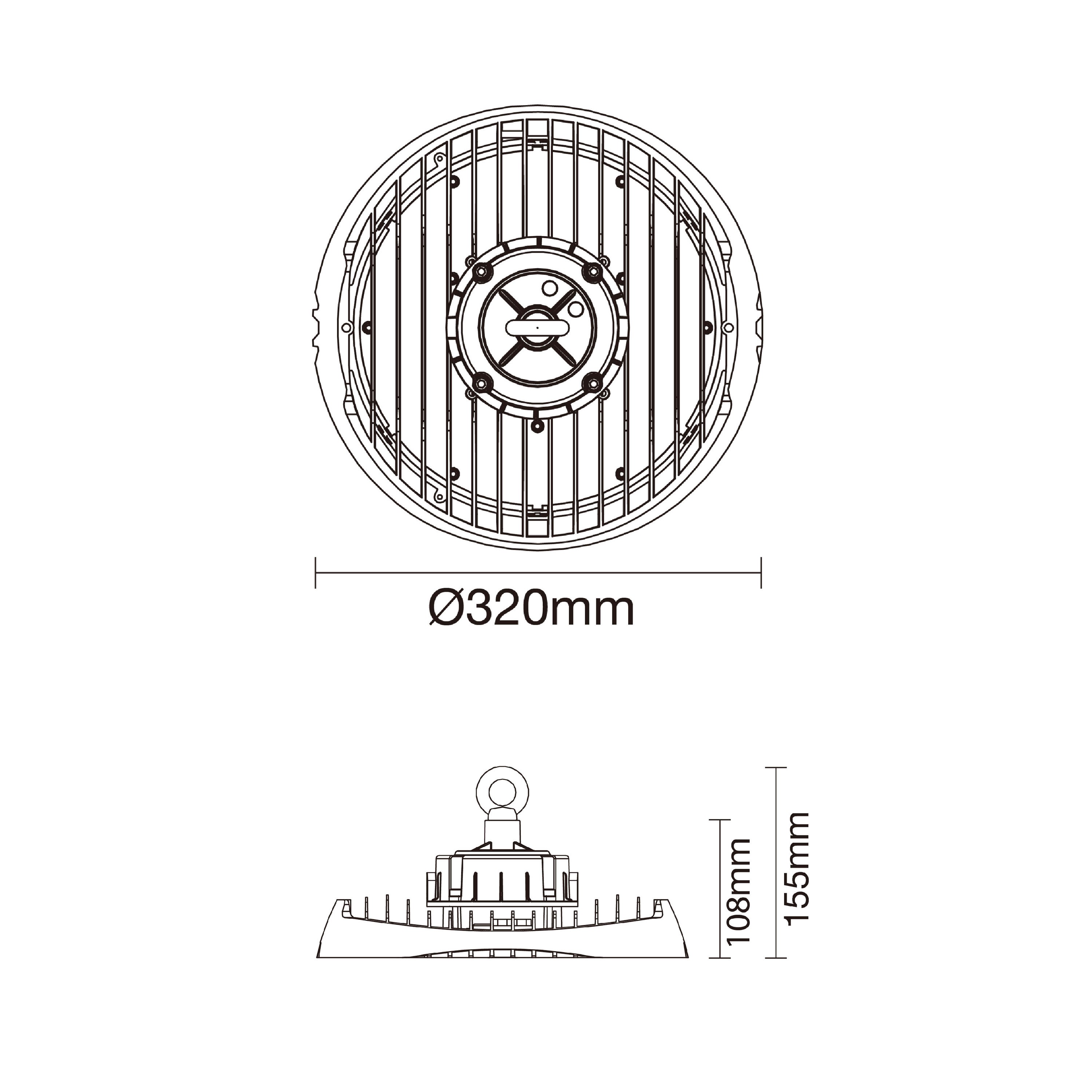 KONG G2 Highbay - Armature industrielle 200W 30000lm 150lm/W IP66 IK08 2CCT 4000K/5000K NON DIMMABLE NOIR pour application industrielle. Etrier de fixation KONG non compatible avec la génération KONG G2