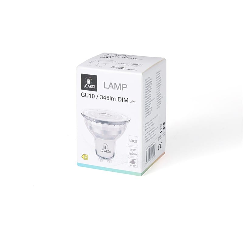 LIT by Cardi - LAMPE LED GU10 DIMMABLE 3W 345lm 4000K GLASS IRC 80 36° 25000H 115lm/W - 0019590117