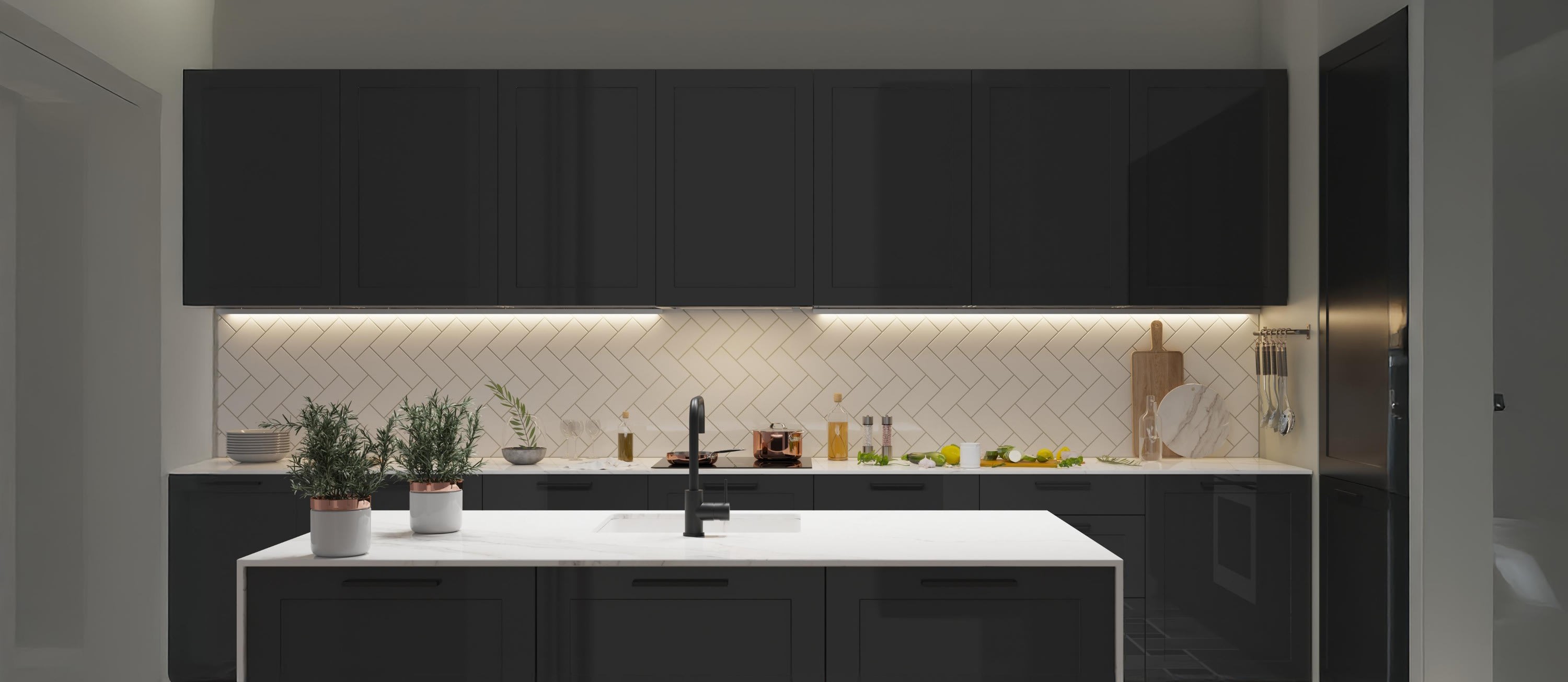 LINEA remplace BOZ en 2026 - Application produit : sous meubles de cuisine, placards, corniches, ligne continue.