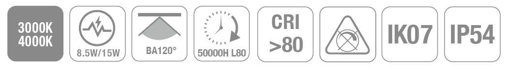 LIT by Cardi - QUEEN HUBLOT G2 2CCT 3000/4000K 8,5-15W 1000/1800lm IP54 IK07 120LM/W - 0028920279