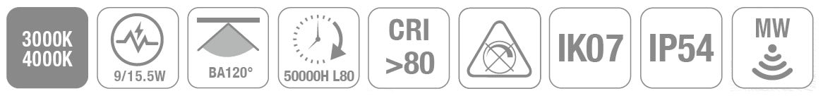 LIT by Cardi - QUEEN HUBLOT G2 DETECTEUR 2CCT 3000/4000K 9-15,5W 1000/1800lm IP54 IK07 115LM/W - 0028920280