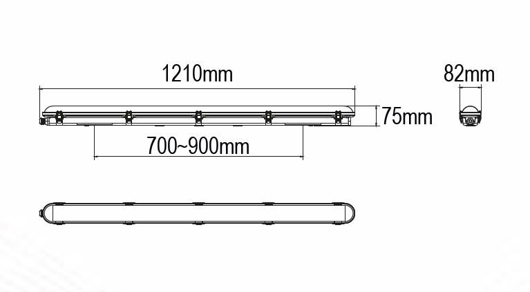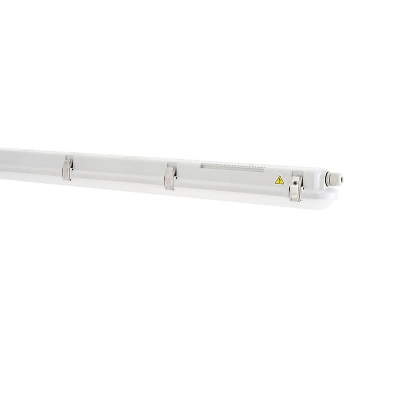 Luminaire étanche technique à haute efficacité lumineuse, en polycarbonate, fixations et crochets en inox.