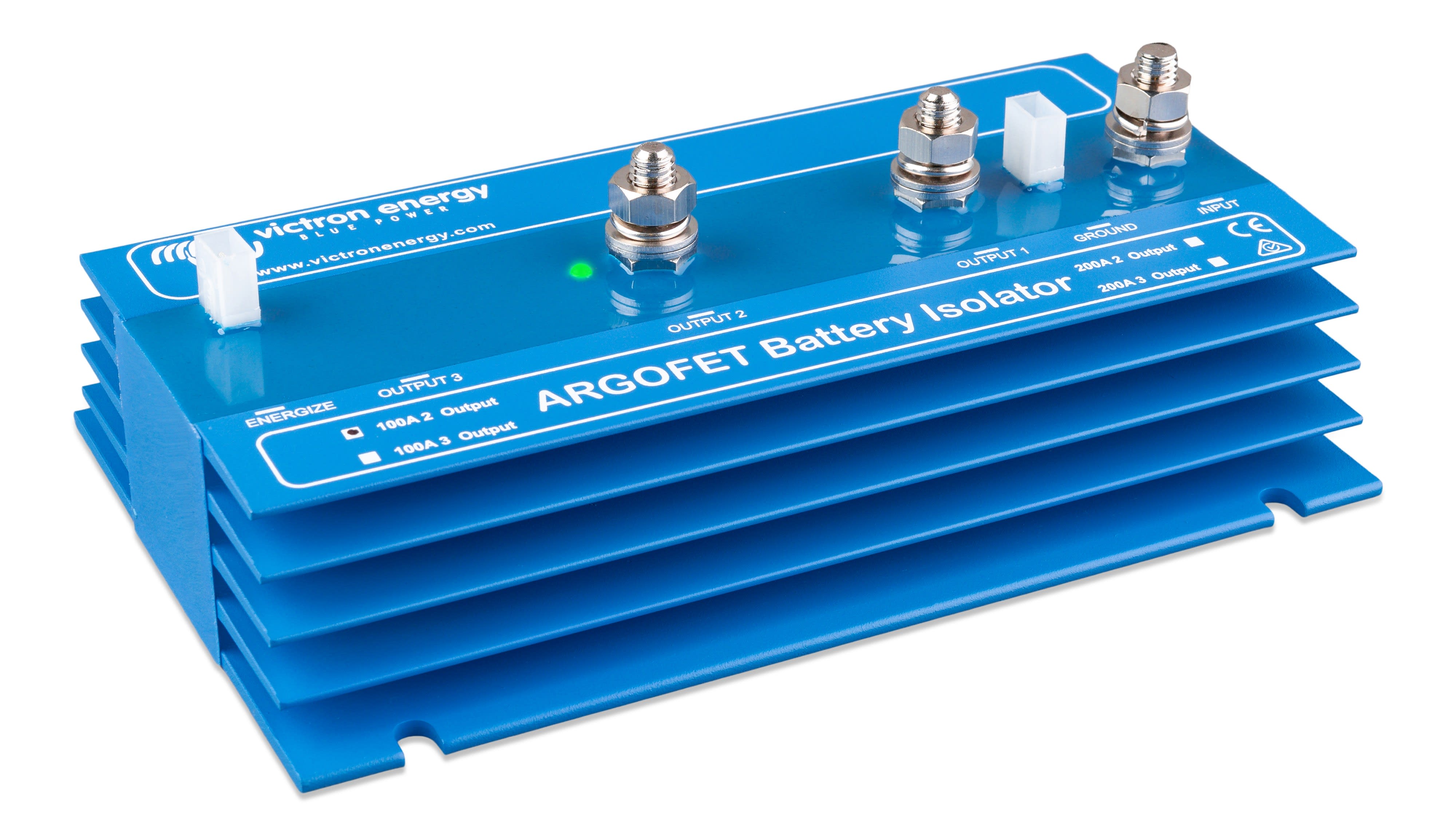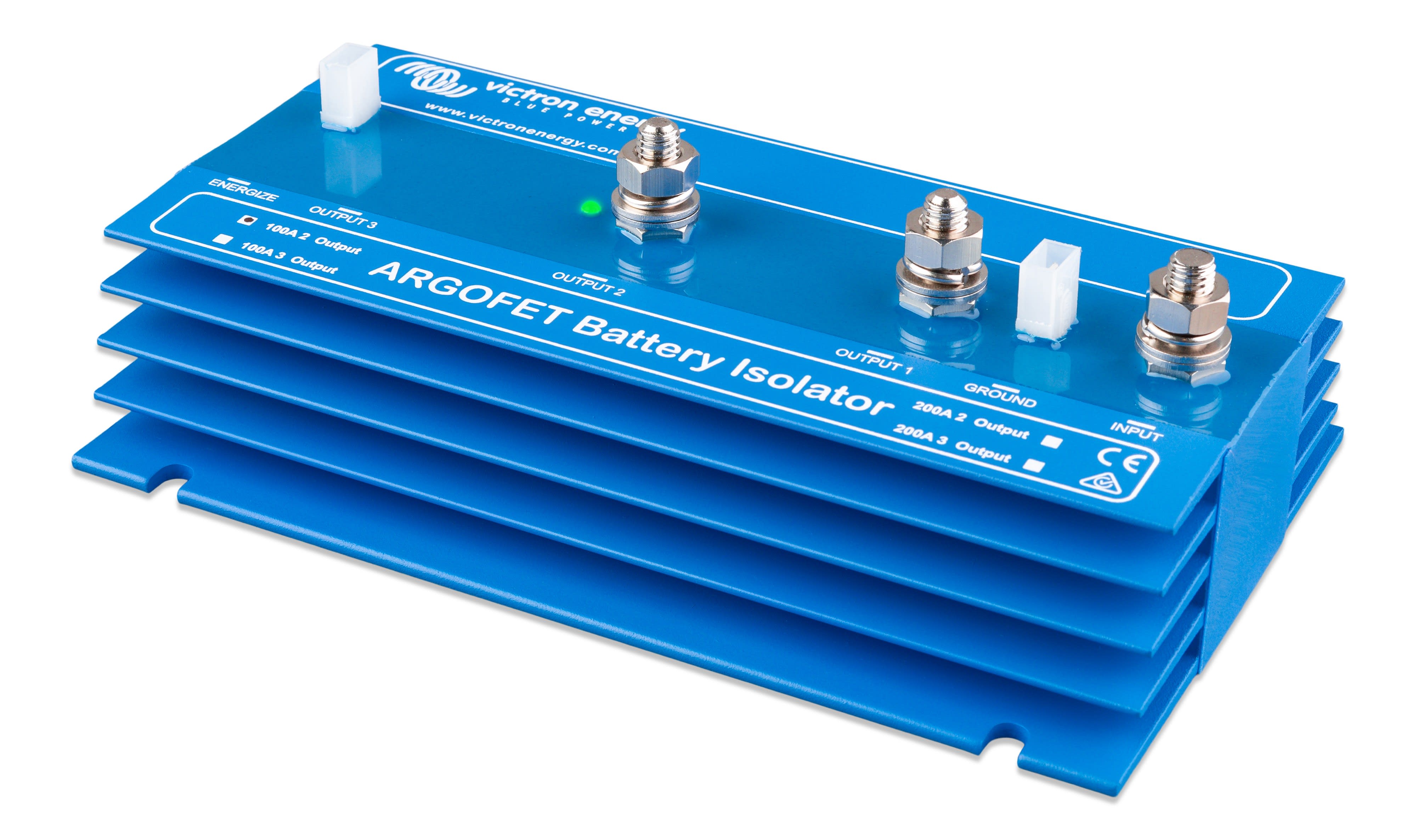 Semblables aux répartiteurs de batteries à diode, les répartiteurs Argofet permettent de charger en même temps deux batteries ou plus à partir d’un alternateur (ou d’un chargeur de batterie à simple sortie), sans qu’il ne soit nécessaire de raccorder les batteries entre elles. Contrairement aux répartiteurs de batteries à diode, les répartiteurs Argofet n’ont pratiquement aucune perte de tension. Les chutes de tensions sont inférieures à 0,02 Volts pour des courants faibles, et en moyenne de 0,1 Volt pour des courants plus élevés.
