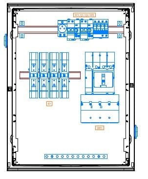 Coffret AC tri 100 kW pour 1 onduleur triphasé avec intersectionneur 160A, parafoudre triphasé TT protection intégrée, prise, arrêt d'urgence en façade et bobine Mx, dans un coffret polyester IP65 IK10 805*615*315mm conforme UTE C15-712-1