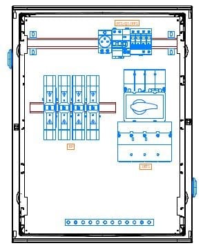 Coffret AC tri 125 kW pour 1 onduleur triphasé avec intersectionneur 250A, parafoudre triphasé TT protection intégrée, prise, dans un coffret polyester IP65 IK10 805*615*315mm conforme UTE C15-712-1