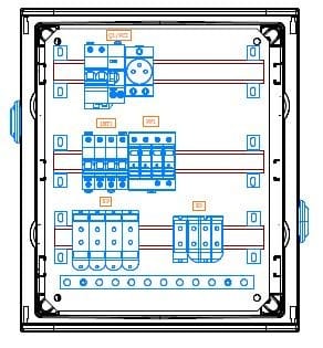 Coffret AC tri 50 kW pour 1 onduleur triphasé avec intersectionneur 100A, parafoudre triphasé TT protection intégrée, prise, dans un coffret polyester IP65 IK10 500*430*210mm conforme UTE C15-712-1