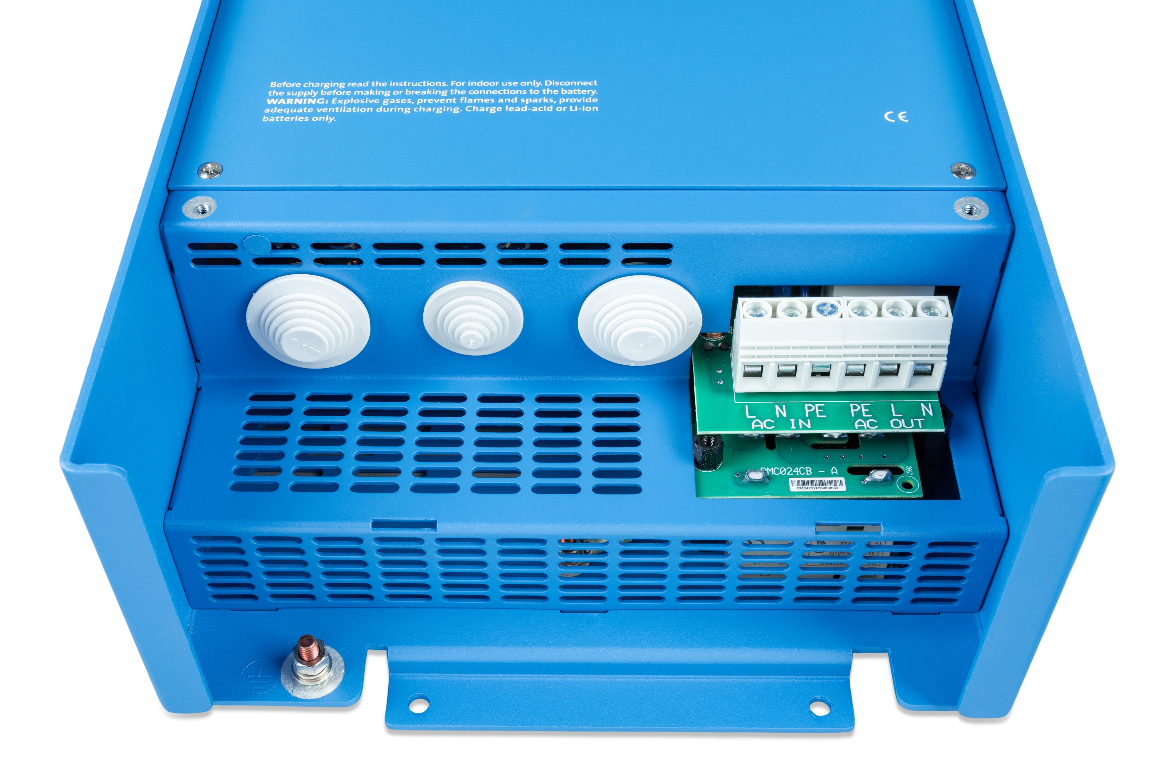 Comme le suggère son nom, le MultiPlus est un appareil combinant un convertisseur et un chargeur dans un seul boitier. Parmi ses nombreuses fonctions, il inclut un convertisseur à sinusoïde pure, une charge adaptative, une technologie PowerAssist hybride, ainsi que des fonctions d'intégration de systèmes multiples.Le MultiPlus empêchera la surcharge d'une source CA limitée, telle qu'une connexion de quai ou de générateur. Le processus de charge de la batterie sera d'abord automatiquement réduit ; dans le cas contraire, une surcharge se produirait. Ensuite, la sortie d'un générateur ou de l'alimentation de quai sera stimulée en extrayant la puissance de la batterie.En cas de coupure secteur ou de déconnexion du quai ou du générateur, le convertisseur du Multi s'active automatiquement et il reprend l'alimentation des charges connectées. Ce transfert est si rapide (moins de 20 millisecondes) que le fonctionnement des ordinateurs ou des autres équipements électroniques ne sera pas perturbé.Jusqu'à 6 Multi peuvent fonctionner en parallèle pour obtenir plus de puissance en sortie. Un fonctionnement triphasé ou en phase divisée est également possible. Veuillez vérifier les fiches techniques pour savoir quels modèles peuvent être montés en parallèle, en triphasé ou en phase divisée.Lorsqu'il est associé à un appareil GX (par ex. un Cerbo GX), vous pouvez superviser et contrôler votre Multi et votre système ou systèmes soit localement (LAN) soit à distance par Internet depuis n'importe où dans le monde par le biais de l'application gratuite VRM et du site Web gratuit VRM. Vous pouvez y accéder depuis un téléphone, une tablette, un ordinateur portable ou un PC fonctionnant avec différents systèmes d'exploitation. Le niveau de contrôle sur votre système n'a pas de limite que ce soit pour effectuer des réglages sur votre Multi ou pour lancer le démarrage automatique de votre générateur de secours, et bien plus encore... »