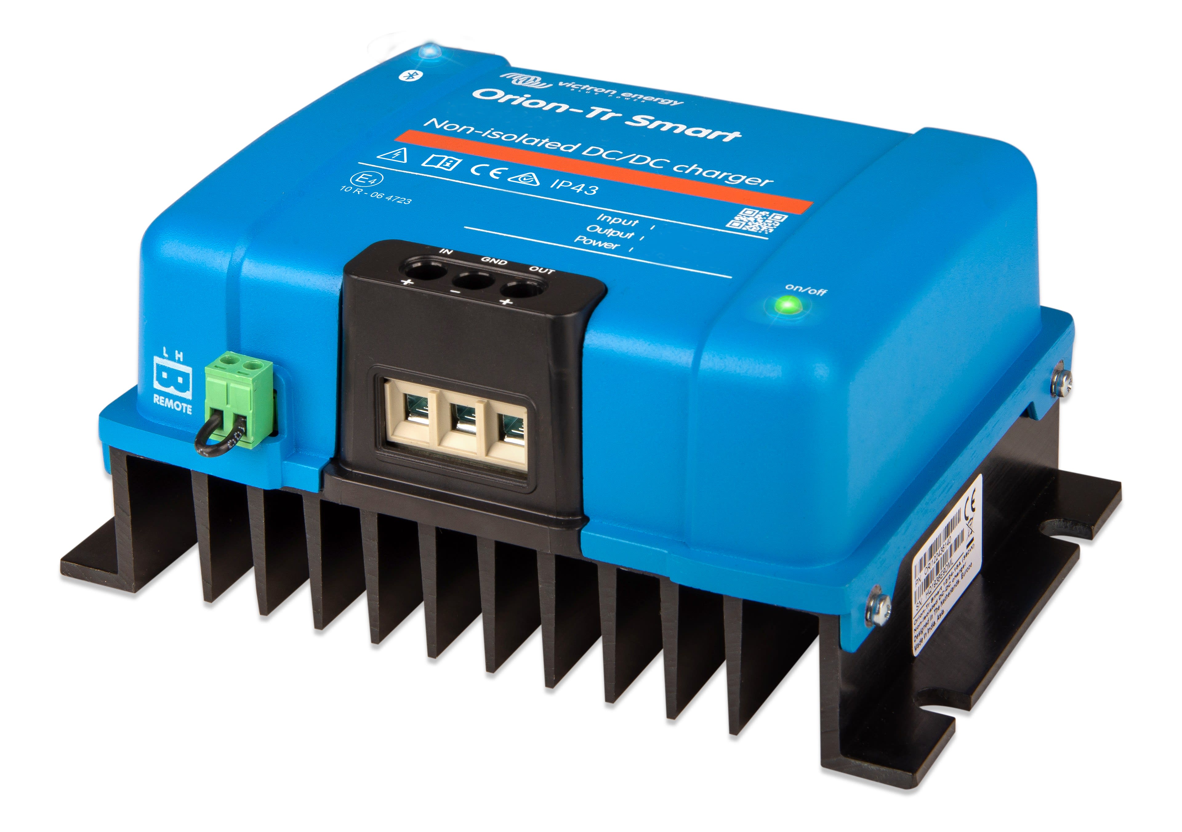 Le chargeur Orion-Tr Smart CC-CC est un chargeur professionnel de courant CC à CC, avec une charge adaptative en trois étapes, et une fonction Bluetooth intégrée.Il peut être utilisé au sein de systèmes de batteries doubles installés dans des véhicules ou des bateaux, et pour lesquels l'alternateur et la batterie de démarrage servent à recharger la batterie de service. L'unité peut être supervisée et programmée par Bluetooth, et elle peut être contrôlée à distance à l'aide d'un interrupteur d'allumage et d'arrêt à distance.Le chargeur Orion-Tr Smart peut être utilisé dans des systèmes de 12 ou 24 V, et il s'adapte à la fois aux batteries au plomb et au lithium. Les modèles sont disponibles jusqu'à une puissance de 400 W, et un nombre illimité de plusieurs unités peut être raccordé en parallèle pour augmenter la puissance de sortie.Ces chargeurs peuvent être exploités dans des conditions de température allant jusqu'à 55°C, avec une sortie nominale complète jusqu'à 40°C.