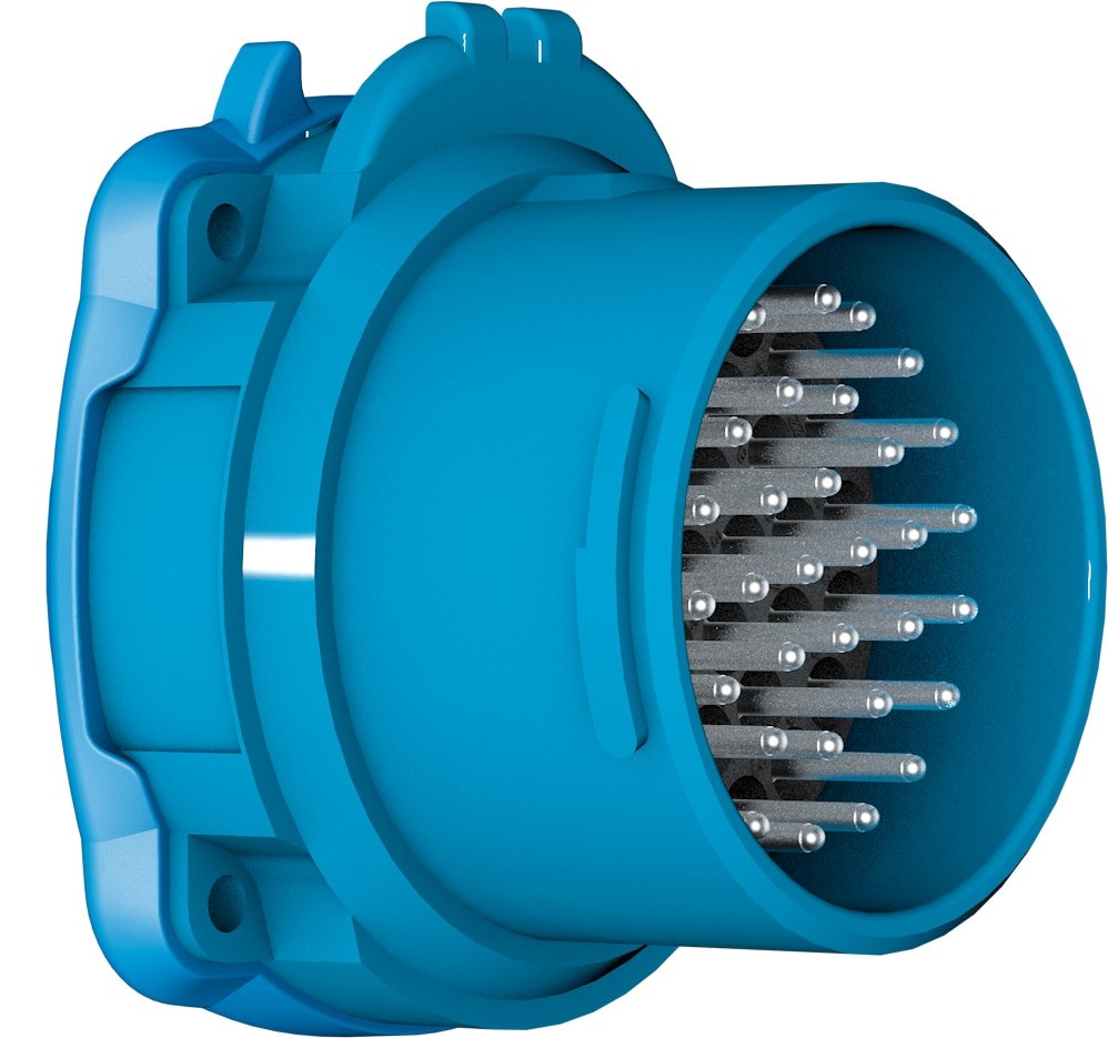 Connecteurs multicontacts poly, compacts et étanches, qui permettent à la fois la mise en œuvre de l’alimentation électrique et le passage d’informations et de signaux bas niveaux.