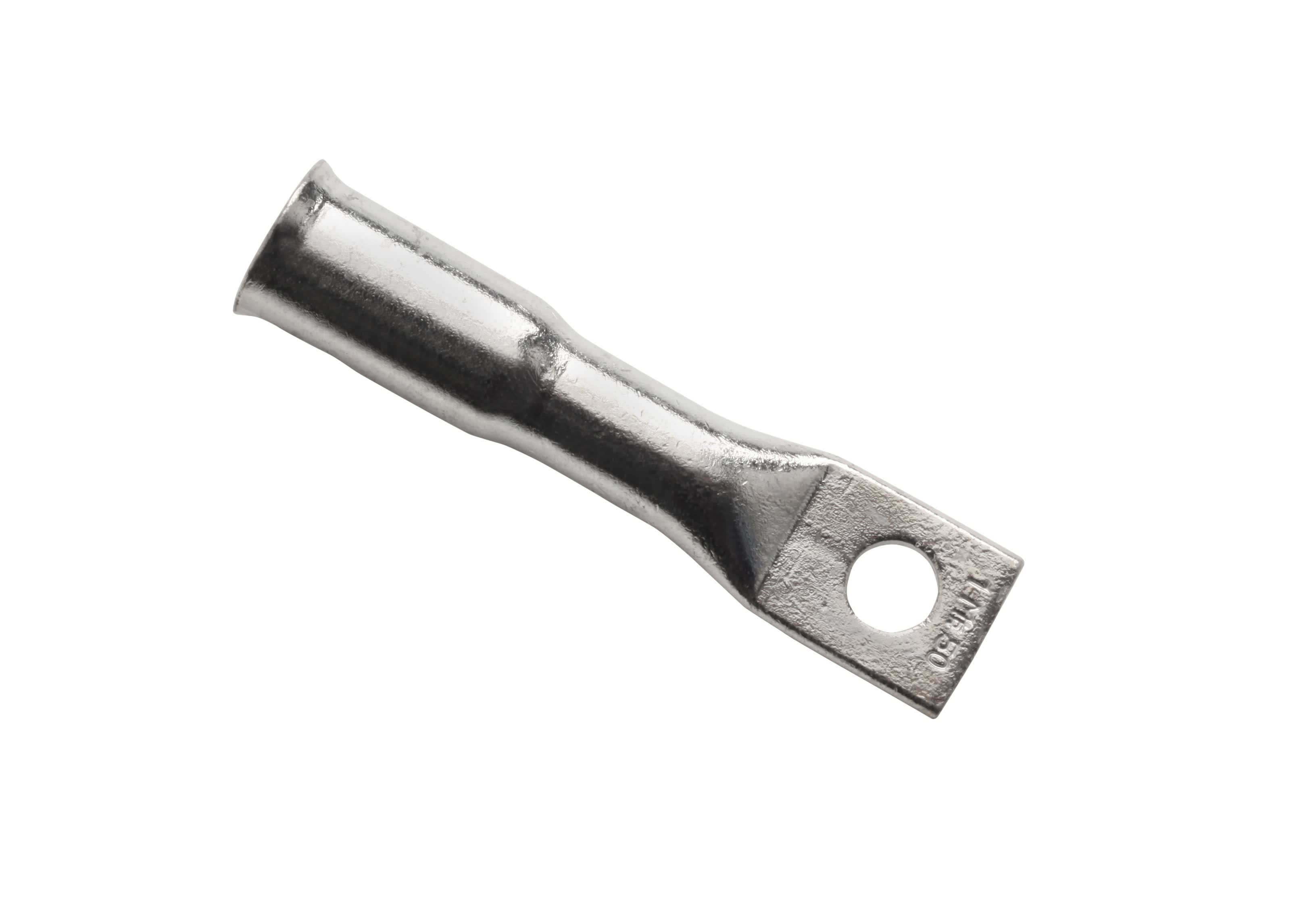 COSSE TUBULAIRE CUIVRE EXPANSEE POUR SERTISSAGE SUR AME ET ISOLANT PLAGE LONGUE AXIALE 50MM² M10 ETAMEE