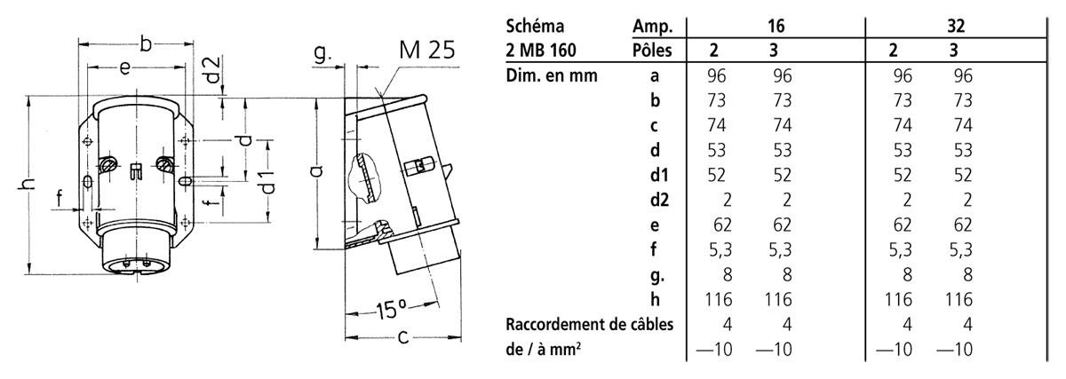 MENNEKES ELECTROTECHNIQUE FRANCE - Connecteur mural 16A 2P 0h IP44 - 1955