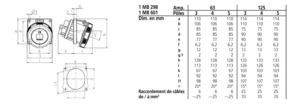 MENNEKES ELECTROTECHNIQUE FRANCE - Prise a enc. 125A 4P 6h 400V IP67 - 212AB