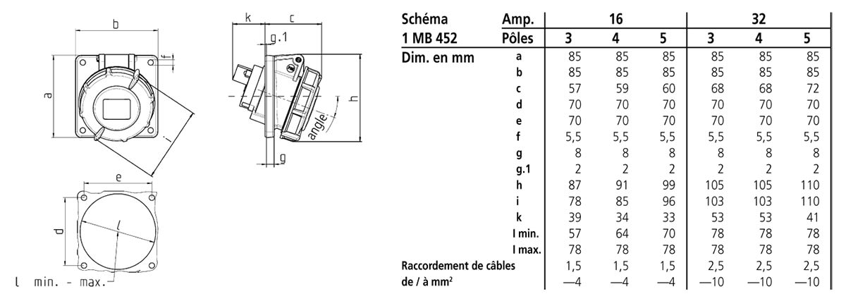 intensité de courant IEC - 16 A