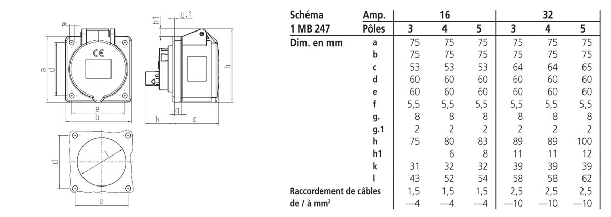 MENNEKES ELECTROTECHNIQUE FRANCE - Prise a enc. 16A 4P 5h IP44 - 3183