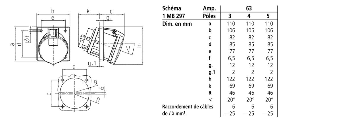 intensité de courant IEC - 63 A