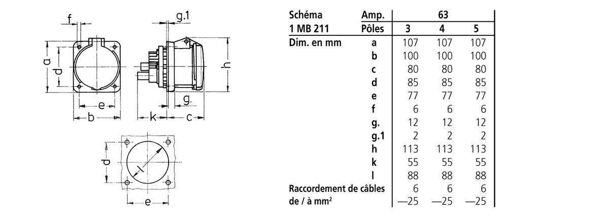 MENNEKES ELECTROTECHNIQUE FRANCE - Prise a enc. 63A 5P 6h 400V IP44 - 1252P