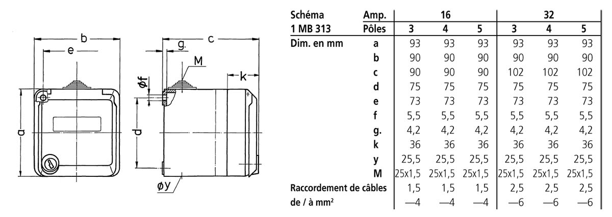 intensité de courant IEC - 16 A
