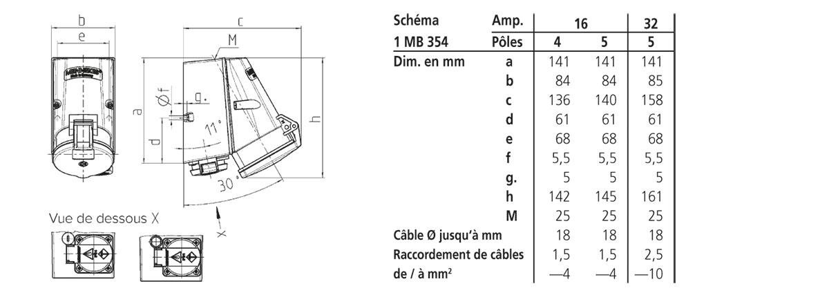 MENNEKES ELECTROTECHNIQUE FRANCE - Prise double 32A 5P 6h IP44 - 1651