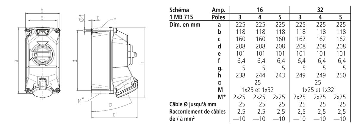 intensité de courant IEC - 16 A