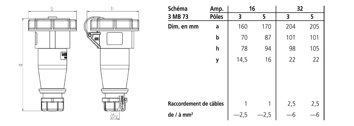 MENNEKES ELECTROTECHNIQUE FRANCE - Prol. AM-TOP R 32A 3P 6h IP67 - 24775