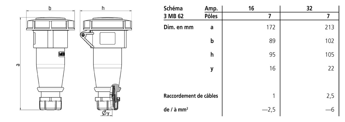 MENNEKES ELECTROTECHNIQUE FRANCE - Prol. AM-TOP R 32A 7P 6h IP67 - 2255