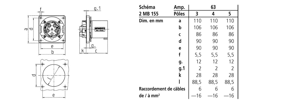 MENNEKES ELECTROTECHNIQUE FRANCE - Socle connect. 63A 3P 6h IP44 - 1981