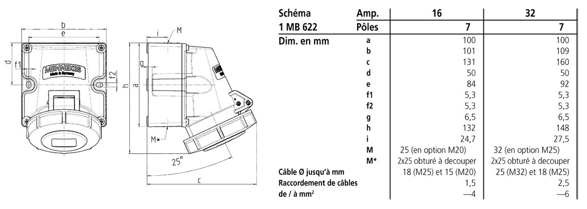 MENNEKES ELECTROTECHNIQUE FRANCE - Socle en saillie 32A 7P 6h IP67 - 9591