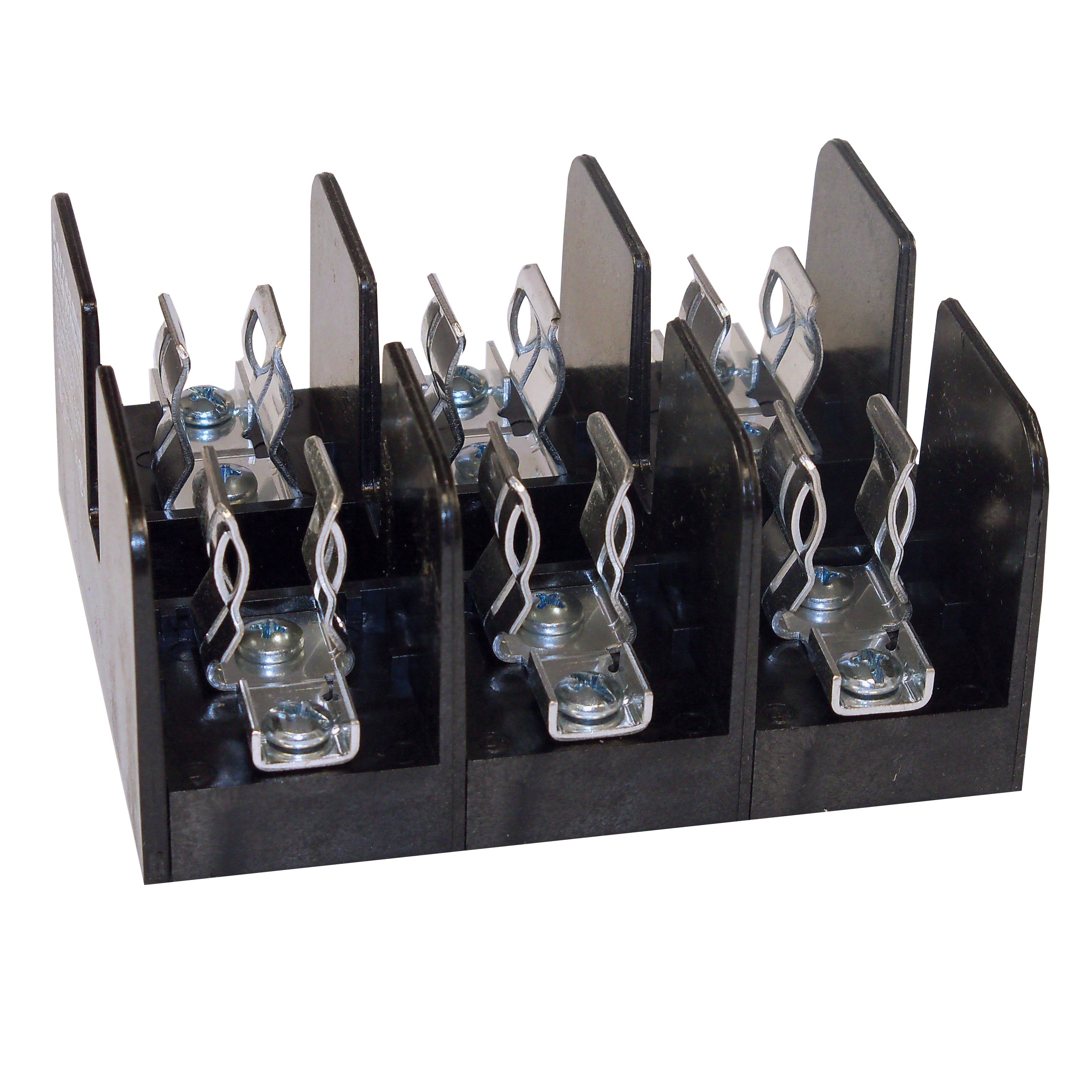 Un choix de connexions à vis, à plaques de serrage, à boite et à tige sur demande spéciale, offre une grande variété de connexions pour conducteurs solides ou toronnés, en cuivre ou en aluminium. Les isolateurs sont fabriqués de polycarbonate renforcé de fibre de verre (GPFC) ou de phénolique avec une rigidité diélectrique supérieure à 2500V. Les porte-fusibles de 30A, 60A et le nouveau modèle SJ de 100A sont de conception spéciale permettant un assemblage rapide pour des configurations de 1-, 2-, ou 3-pôle pour former des ensembles multi-pôles. Toutes les pinces pour fusibles sont fabriquées en cuivre étamé à haute conductivité, avec ou sans ressort. Des options plus compactes sont maintenant disponibles en versions 30A et 100A tel que décrit dans les tableaux de sélection des produits.