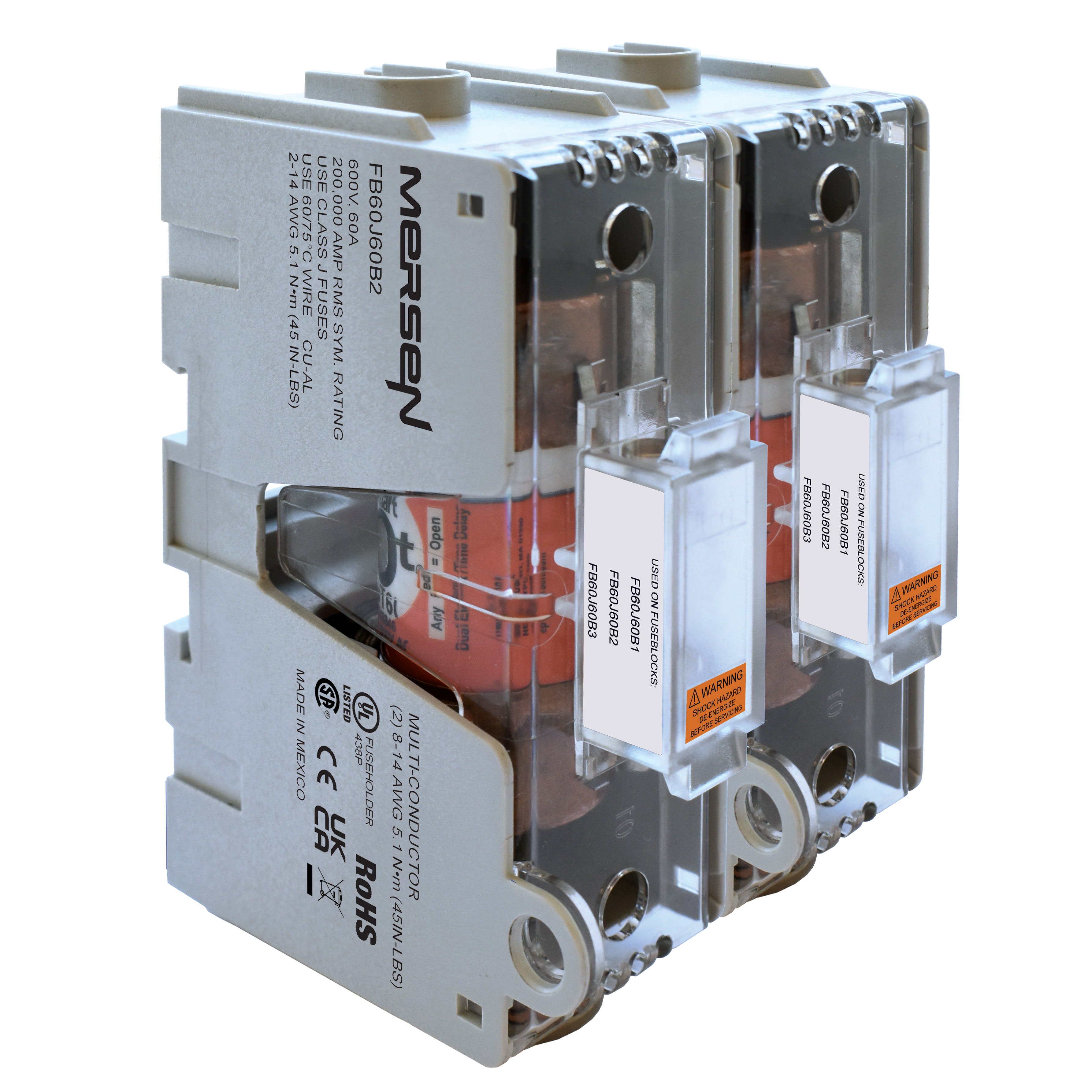 Mersen - Bloc-fusibles 600VAC 600VDC Classe J 60A 2 pôles Boîtier - FB60J60B2
