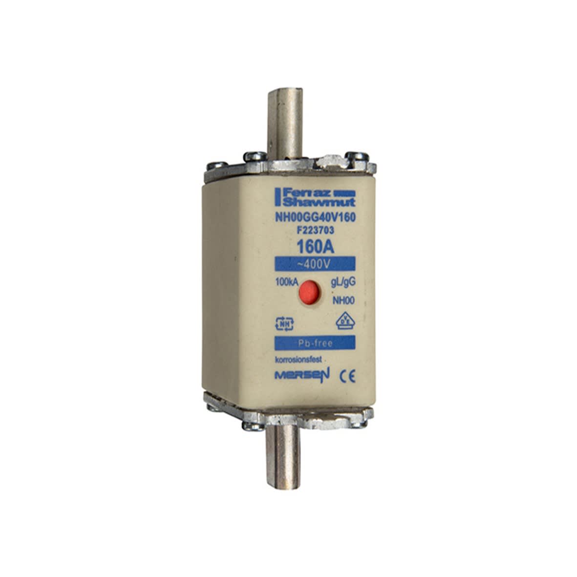 Mersen - Fusible NH00 gG 400VAC 160A pattes non isolées Double indicateur - F223703