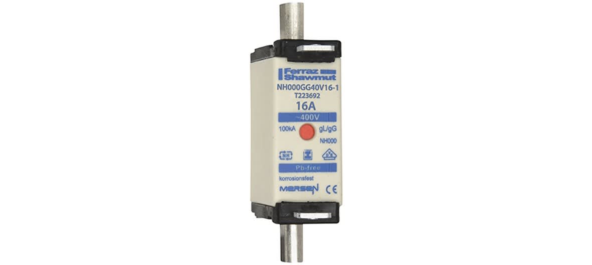 Mersen - Fusible NH000 gG 400VAC 16A pattes isolées Double indicateur - T223692
