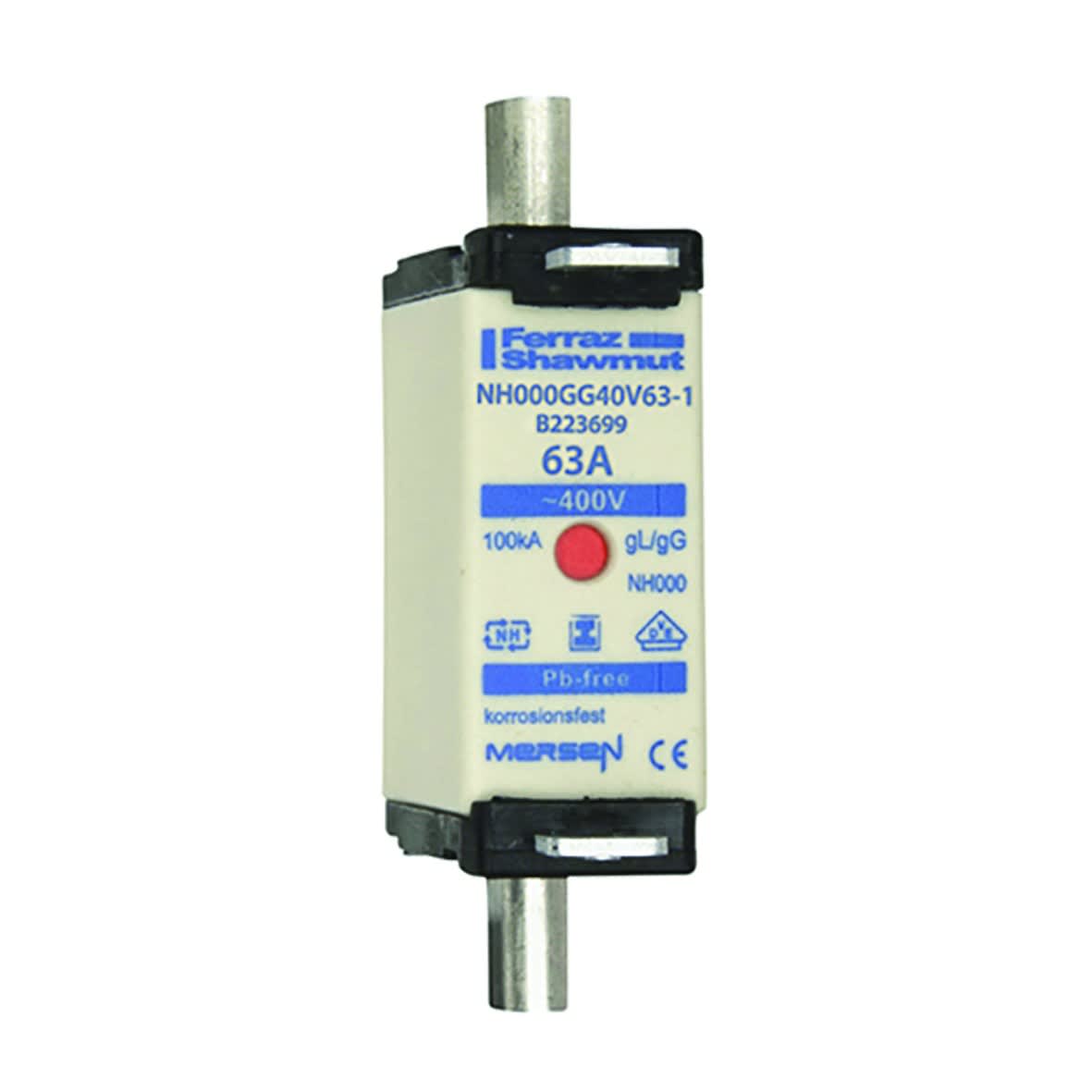Mersen - Fusible NH000 gG 400VAC 63A pattes isolées Double indicateur - B223699