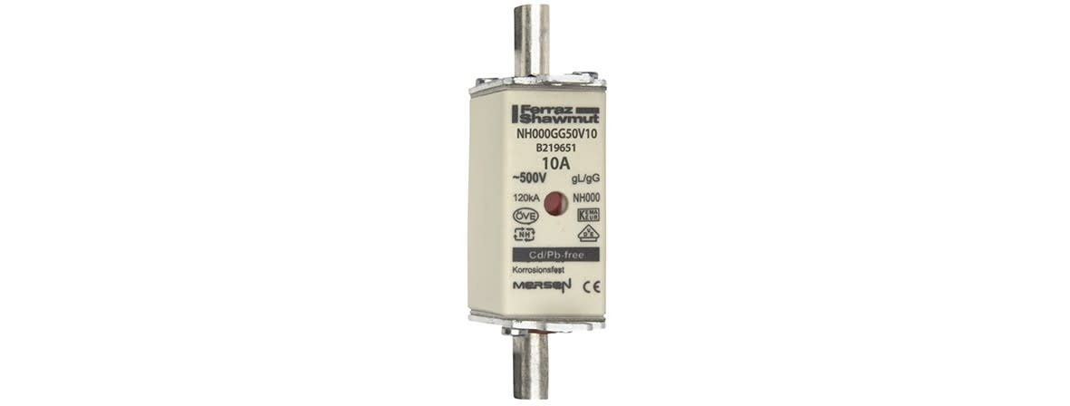 Mersen - Fusible NH000 gG 500VAC 10A pattes non isolées Double indicateur - B219651