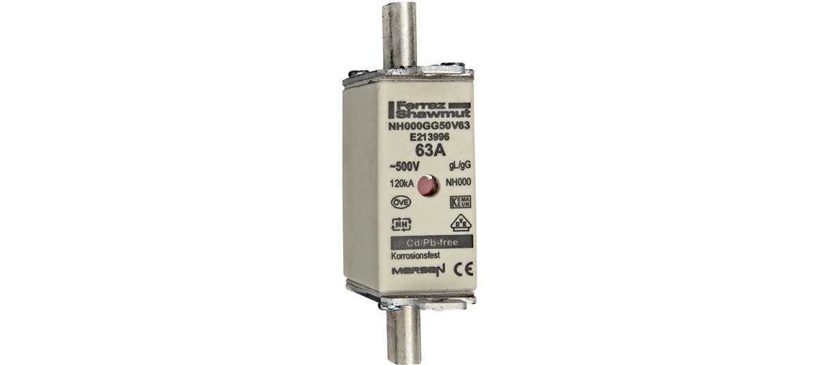 Mersen - Fusible NH000 gG 500VAC 63A pattes non isolées Double indicateur - E213996