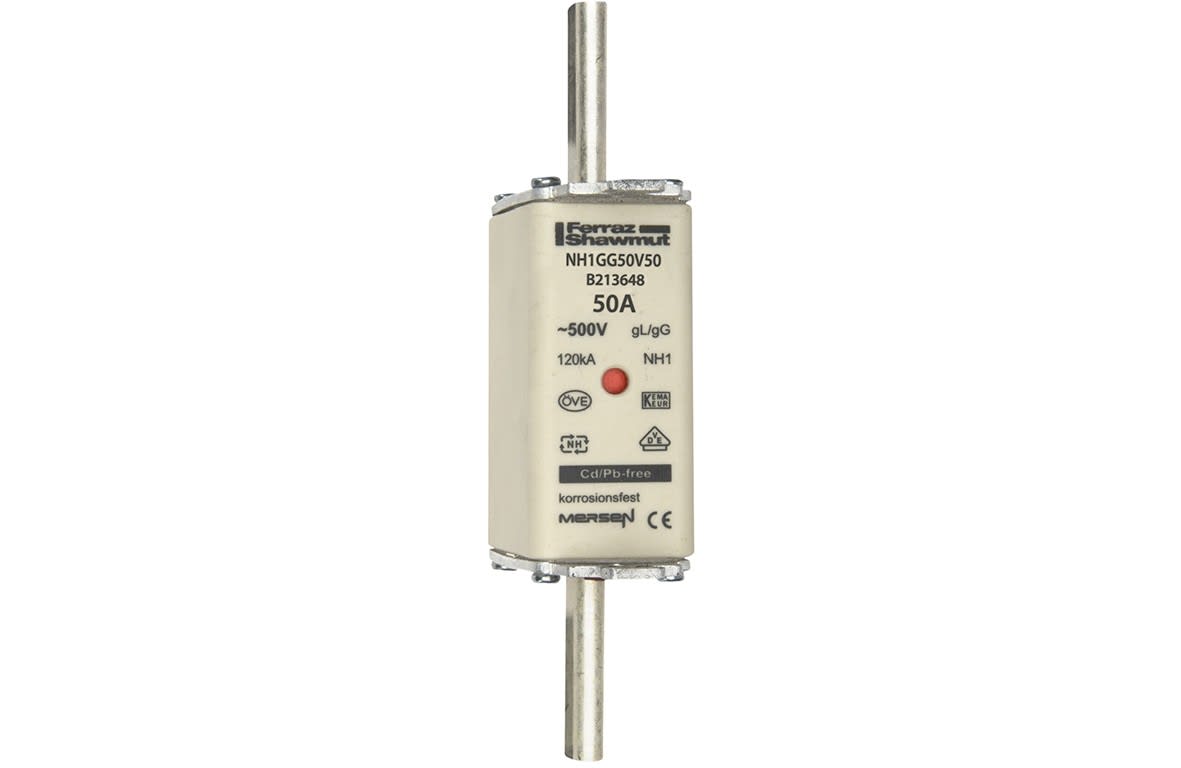Mersen - Fusible NH1 gG 500VAC 50A pattes non isolées Double indicateur - B213648