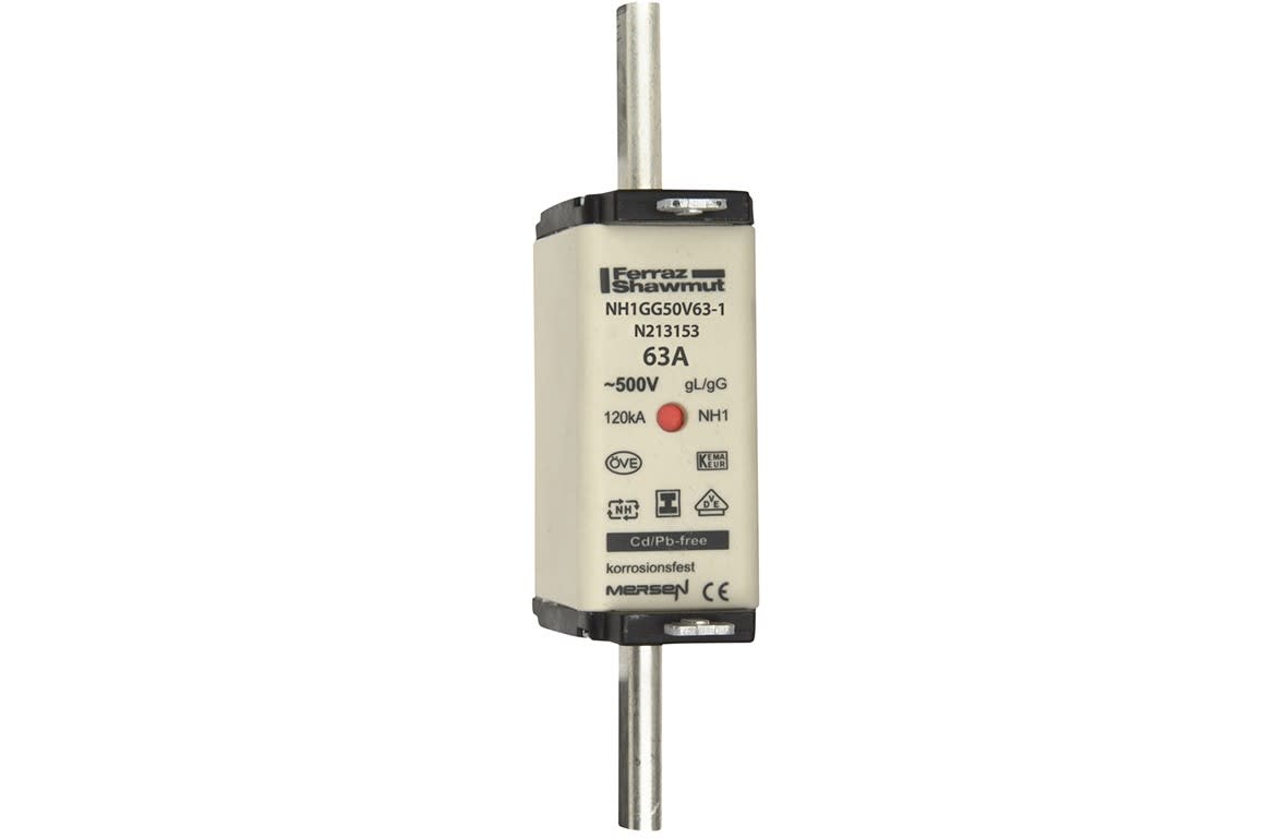 Mersen - Fusible NH1 gG 500VAC 63A pattes isolées Double indicateur - N213153