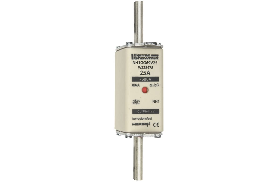 Mersen - Fusible NH1 gG 690VAC 25A pattes non isolées Double indicateur - W228478