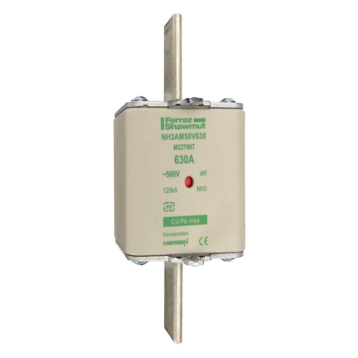 Mersen - Fusible NH3 aM 500VAC 630A pattes non isolées Double indicateur - M227987