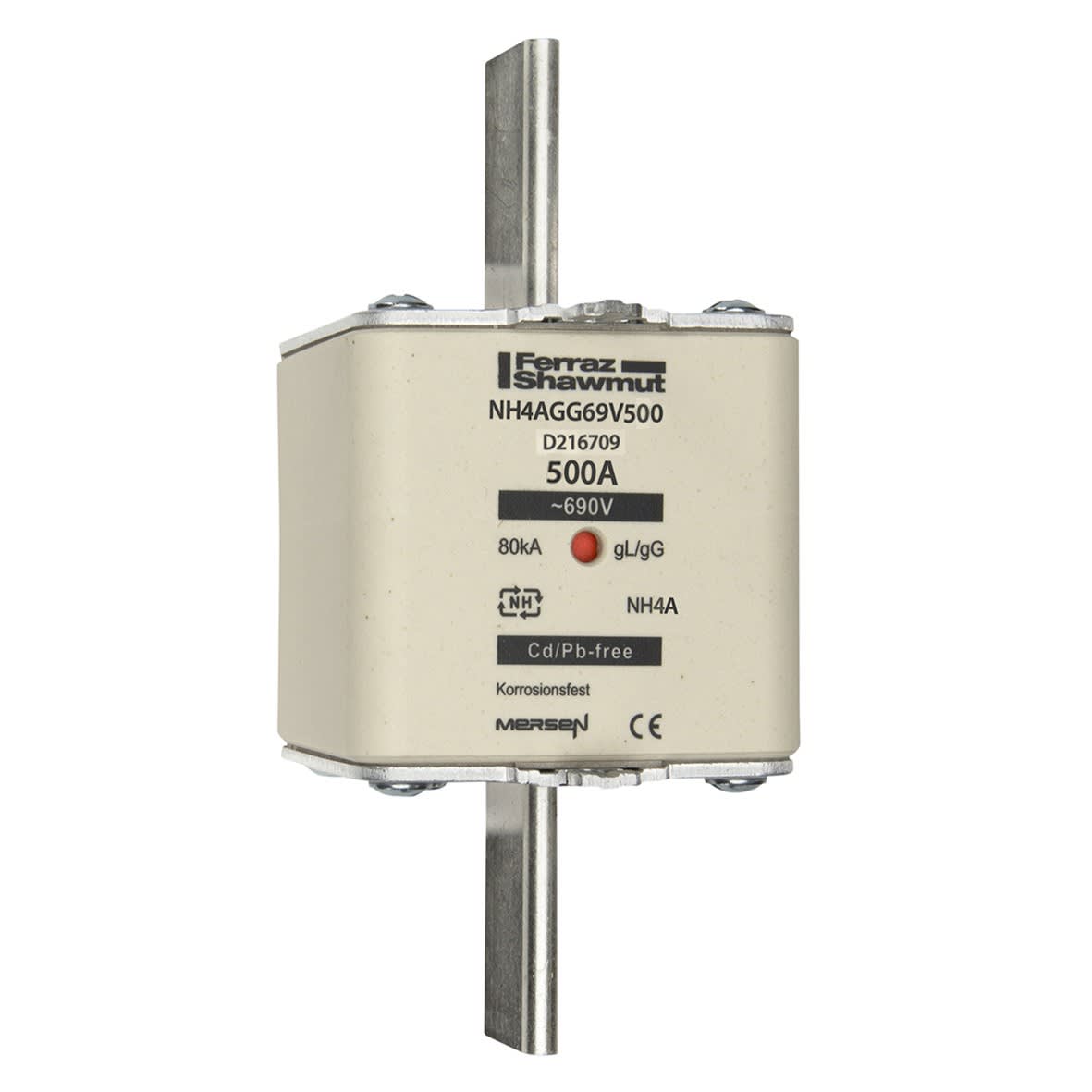 Mersen - Fusible NH4a gG 690VAC 500A pattes non isolées Indicateur central - D1054300